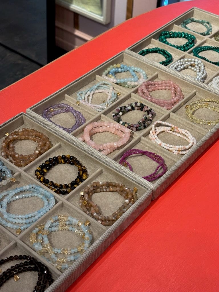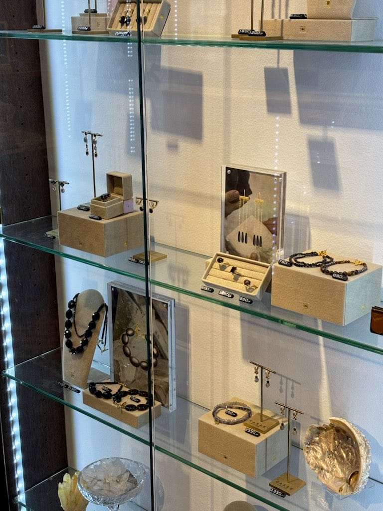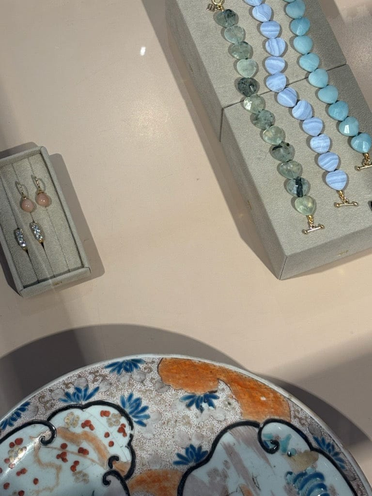 Lige et lille tip; hvis ikke du kender Carrés butik, så er den virkelig et besøg værd. Man træder ind i et farverigt univers, hvor man med det samme fornemmer ekspertise og ægte passion. Butikken er selvfølgelig fyldt med Carrés smykker – smykker, der kan noget helt særligt. De har sjæl og karakter og kan næsten fortælle deres egne historier. Og så er den dekoreret med gamle fund og eksotiske vaser fra Shiris mange rejser, hvilket gør oplevelsen både personlig og nærværende.