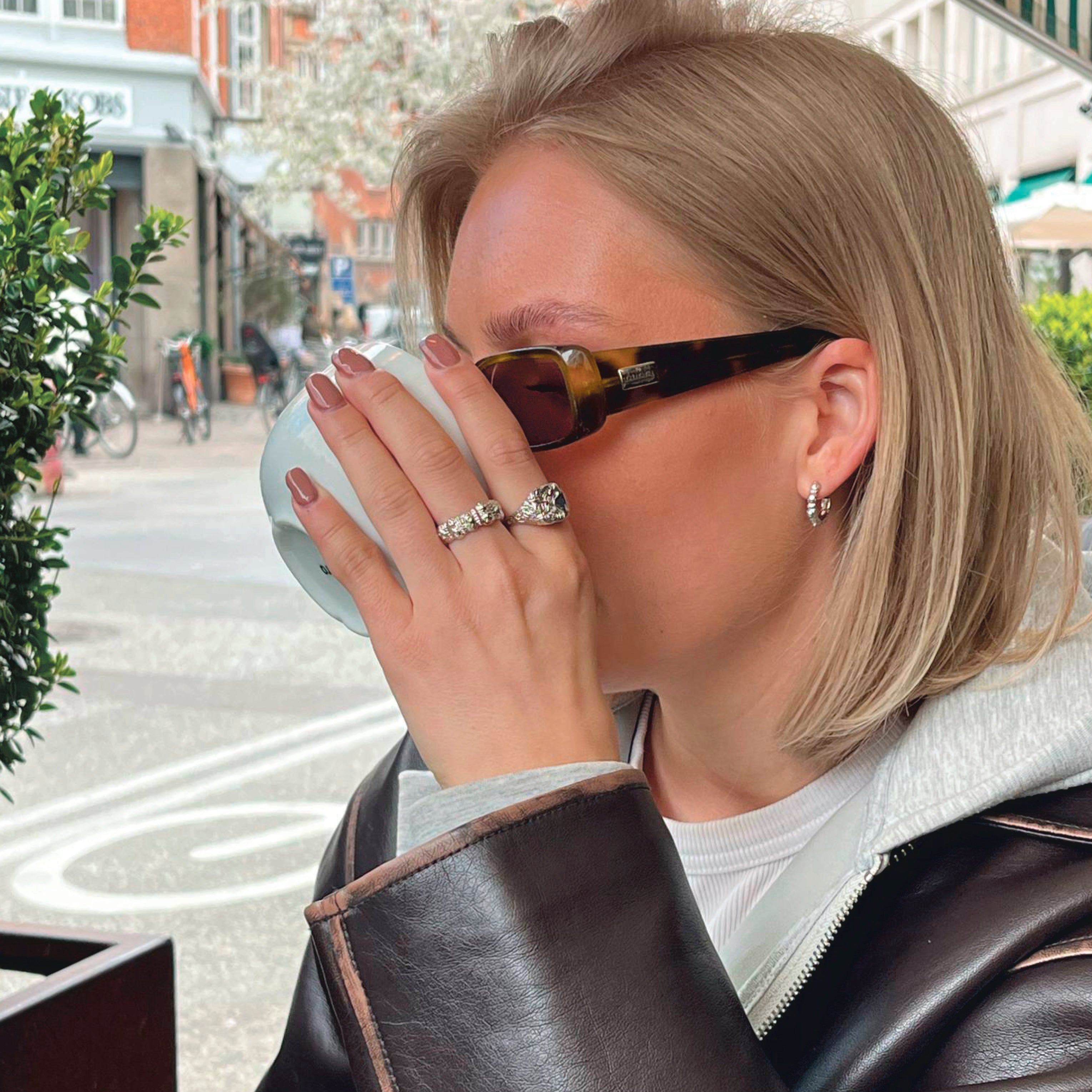 Udtrykket er moderne og tidløst – enkelt, men aldrig anonymt. Hver ring er skabt til at kunne bæres alene for et subtilt touch – eller sættes sammen med andre for et personligt, lagdelt look, der fortæller din egen historie.