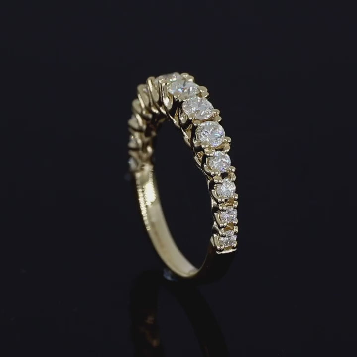 De håndlavede fatninger løfter hver enkelt diamant på en måde, der fremhæver stenens naturlige skønhed og giver ringen et let og sofistikeret udtryk. Den perfekte balance mellem håndværk, kvalitet og tidløs æstetik.