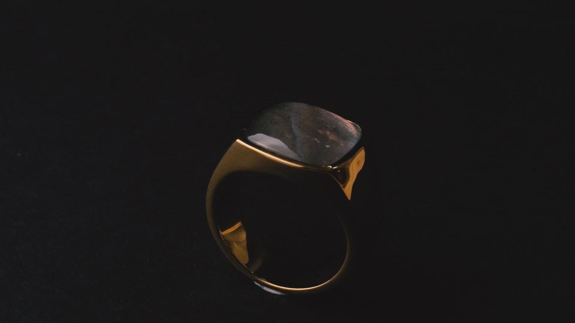 Unisex signet ring med særdeles smuk Labradorite sten. Labradorite er en natursten, og ikke to sten er ens, hvilket gør hver signet ring unik. Brug den alene eller sammen med andre ringe.