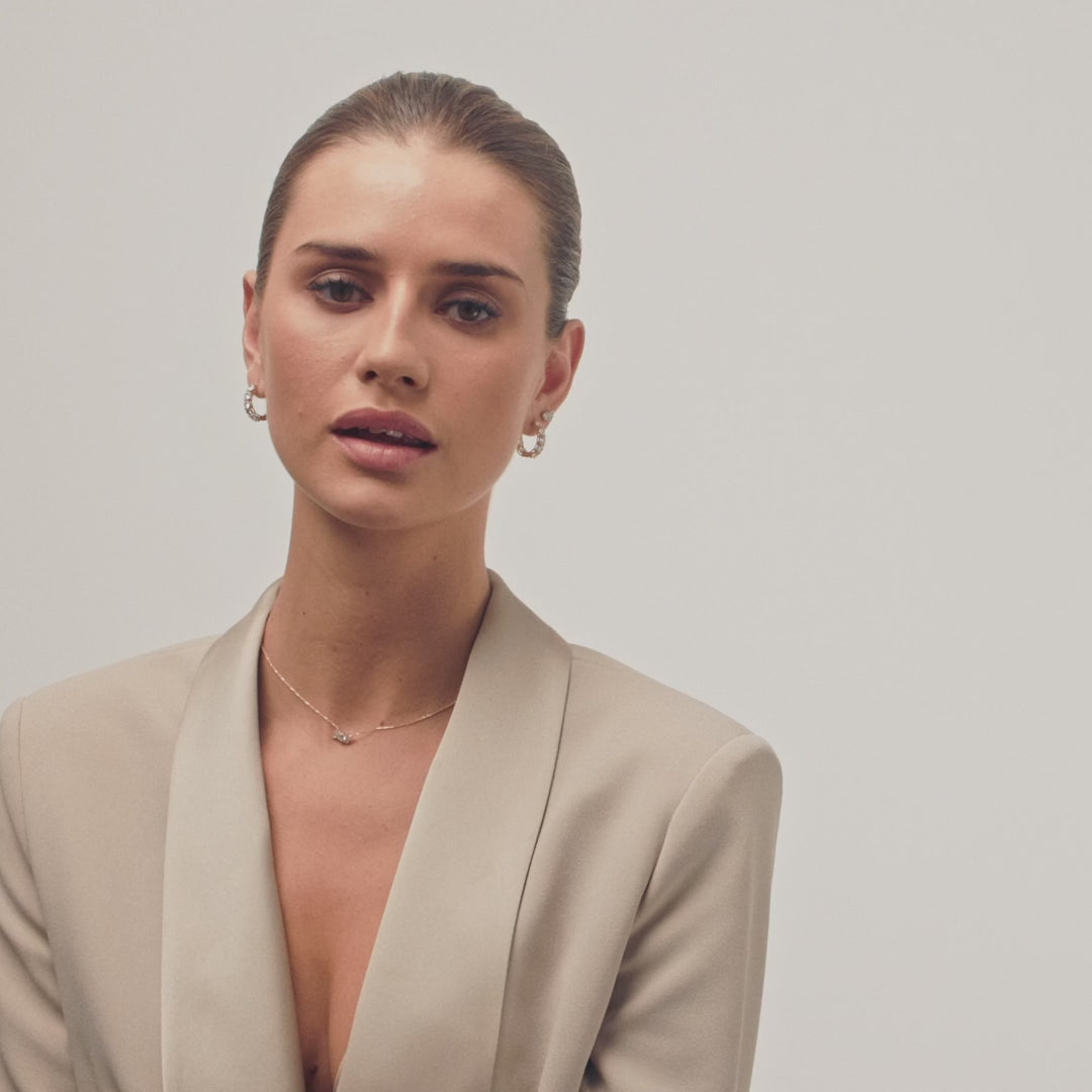 Designet er skabt til at imponere, med store, strålende diamanter, der løber hele vejen rundt langs hoopen. Øreringene har en diameter på 21 mm og en bredde på 4,5 mm, hvilket gør dem både iøjnefaldende og elegante. Perfekte til at tilføje et luksuriøst præg til enhver stil, er disse øreringe ideelle til særlige anledninger og de øjeblikke, hvor du ønsker at skinne lidt ekstra. En del af Sif Jakobs Diamonds kollektionen, hvor skønheden i hver eneste detalje er nøje gennemtænkt. Shine bright with diamonds.