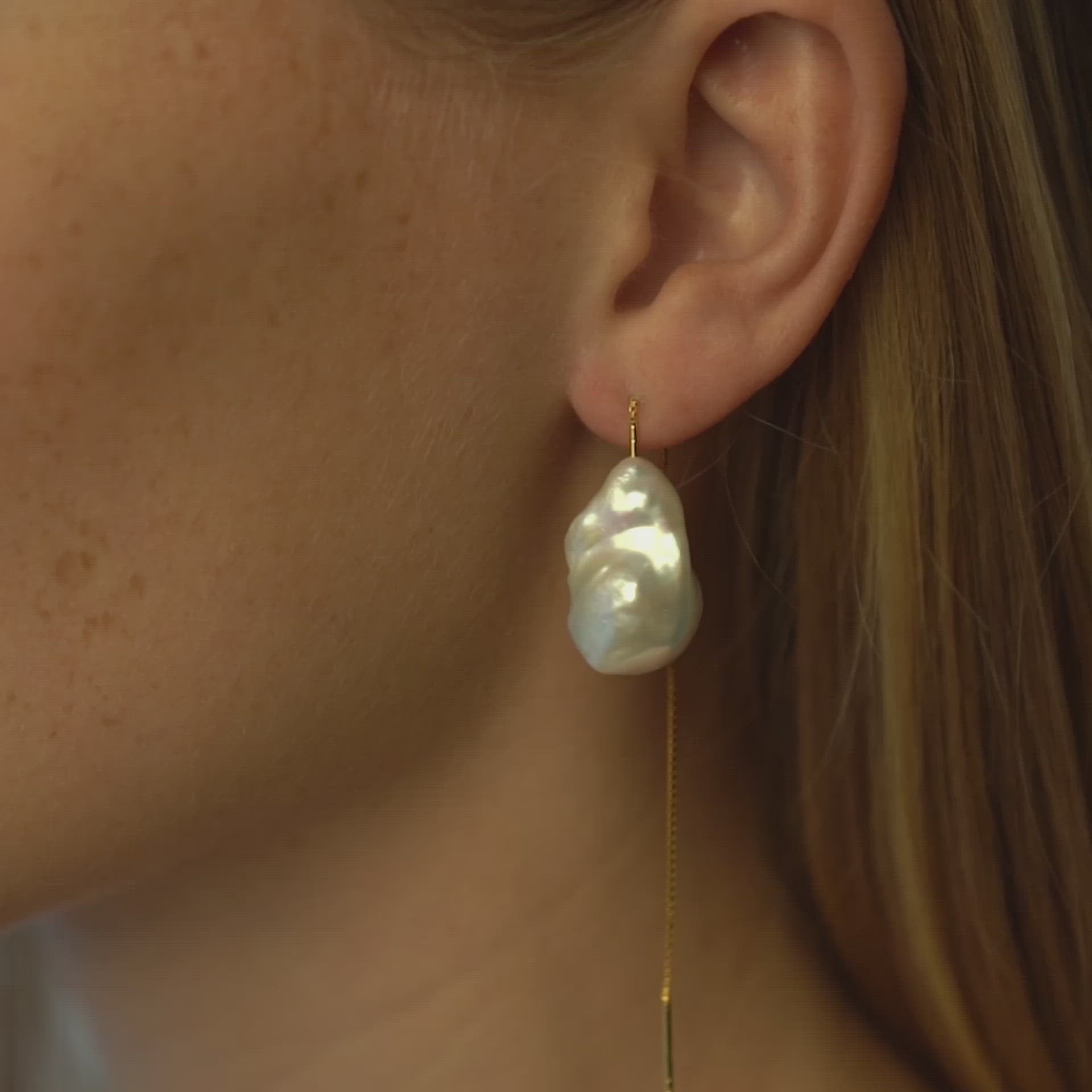 Smuk og uimodståelig ørekæde med en smuk barok ferskvandsperle.